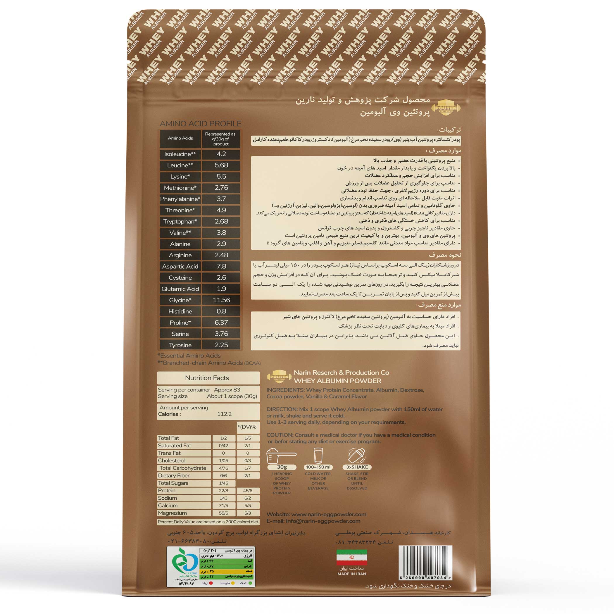 منبع پروتئین با قدرت هضم و جذب بالا بالا بردن یکنواخت و پایدار اسیدهای آمینه در خون ساخت عضله و افزایش حجم و عملکرد عضلات جلوگیری از تحلیل عضلات پس از ورزش مناسب برای رژیم لاغری کاهش خستگیهای فکری و ذهنی حاوی مقادیر چربی ناچیز و بدون کلسترول و اسیدهای چرب ترانس حاوی گلوتامین و تمامی اسیدهای آمینه ضروری بدن هر ۱۰۰ گرم پروتئین وی آلبومین حاوی ۷۵ گرم پروتئین خالص اثرات مثبت روی تناسب اندام.